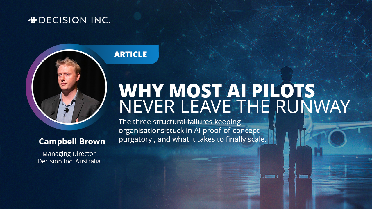 ARTICLE | ENTERPRISE DATA INSIGHTS4 March , 2026 - Nicholas Bell, CEO, Decision Inc.Over the past decade, enterprise leaders have poured extraordinary capital into the promise of becoming data-driven organisations. The narrative has shifted with each wave of...