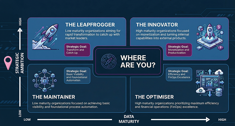 To scale your data and AI investment, you must first understand your unique starting point. The Modern Data Platform Strategy Matrix provides this essential diagnostic by mapping your organization’s Strategic Ambition against its current Data Maturity. This matrix identifies the goals that define your journey.